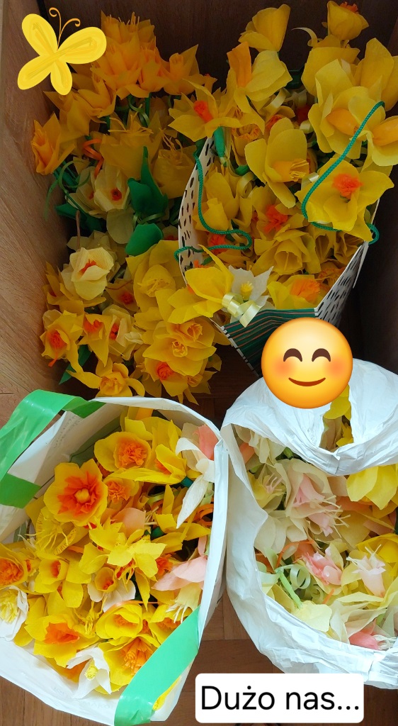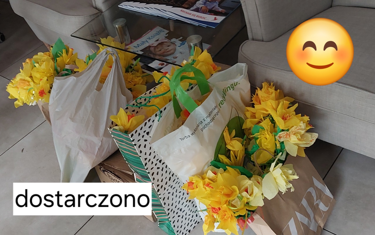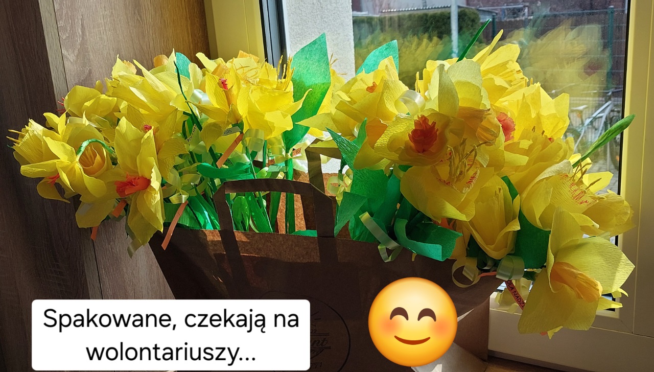 Przez ponad miesiąc wolontariusze naszej szkole tworzyli żonkile z bibuły przeznaczone na ogólnopolską akcję "Pola Nadziei". Wykonanych zostało ponad 300 kwiatków. W ubiegłym tygodniu zostały one spakowane i przekazane Fundacji Pomorskie Hospicjum dla Dzieci. Dziękujemy wszystkim zaangażowanym.