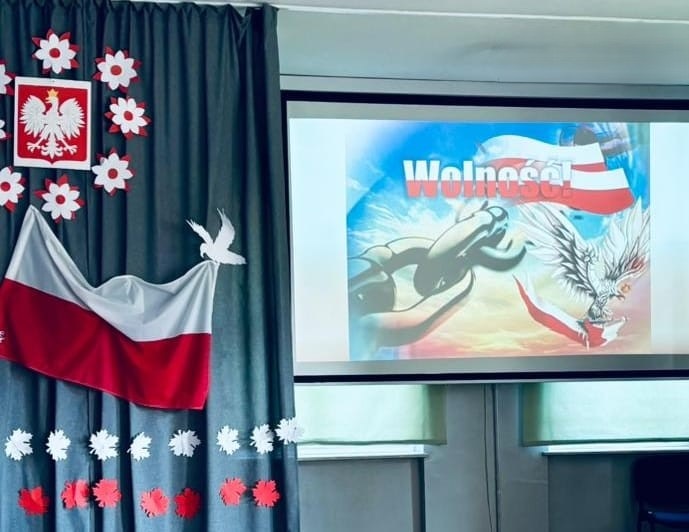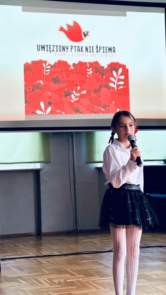 Podsumowaniem naszej lekcji historii była pieśń „Uwięziony ptak nie śpiewa” w pięknym wykonaniu Alicji Paluch z kl. II c oraz utwór „Jest taki kraj” zaśpiewany przez klasy- II a i III a. Na koniec nasi artyści usłyszeli podziękowania i gromkie brawa, a Pani Dyrektor Bożena Zgłobicka złożyła wszystkim życzenia szczęśliwego, dobrego życia w wolnym kraju, wśród wolnych ludzi.