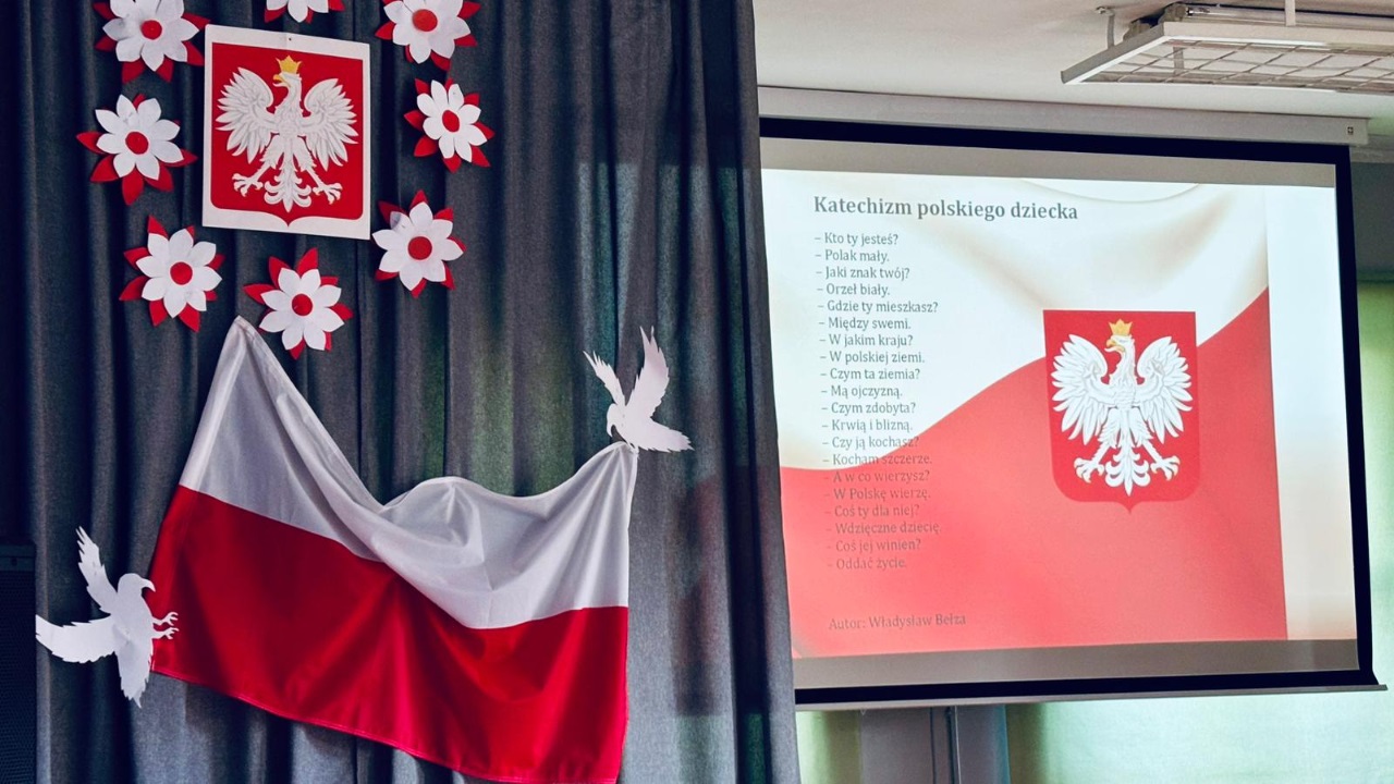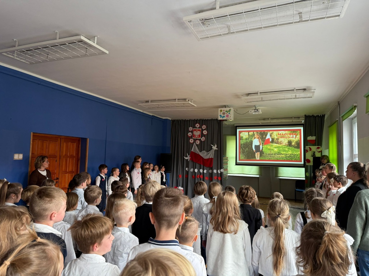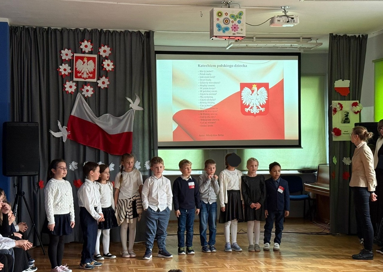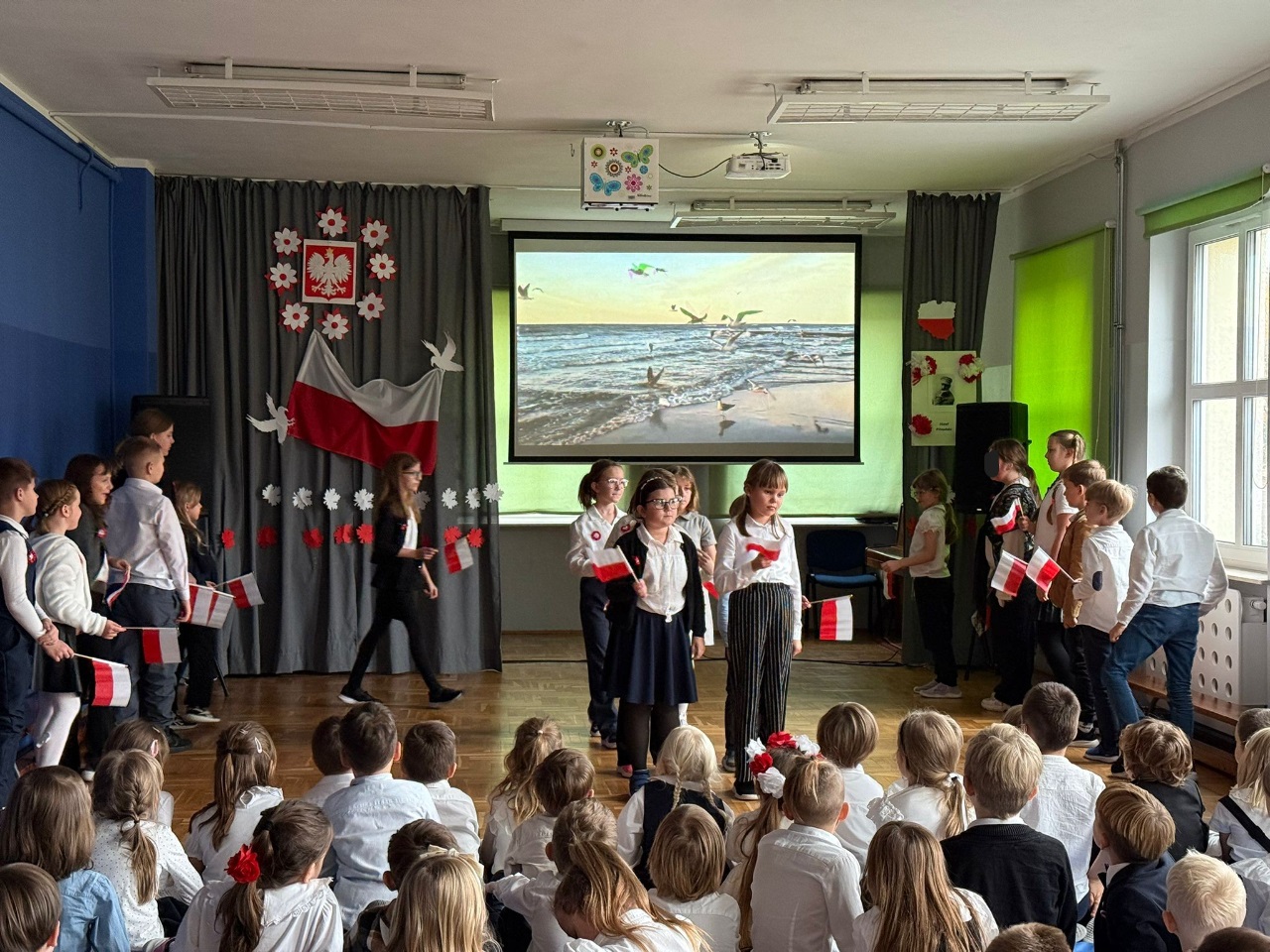 W listopadzie tradycyjnie uczniowie klas I-III oraz dzieci z oddziału przedszkolnego wzięły udział w niezwykłej lekcji historii na temat walki Polaków o niepodległość. Pierwsza część spotkania poświęcona była historii Polski związanej z okresem zaborów, I wojny światowej oraz obchodami Narodowego Święta Niepodległości. Dzieci z dumą zaśpiewały „Mazurek Dąbrowskiego” i recytowały „Katechizm dziecka polskiego” (kl. I a). W marszowym rytmie zabrzmiały w ustach małych artystów takie pieśni jak: „Szara piechota” (kl. I b) „Marsz Pierwszej Brygady” ( kl. III b i II b) oraz „Wojenko, wojenko” (kl. I c).