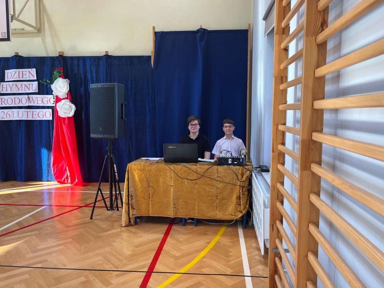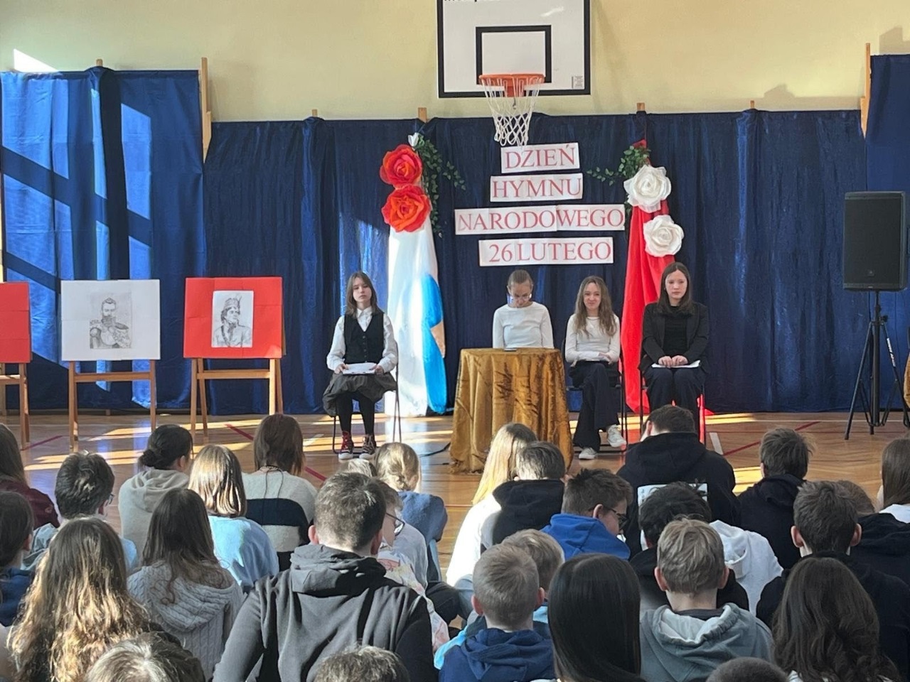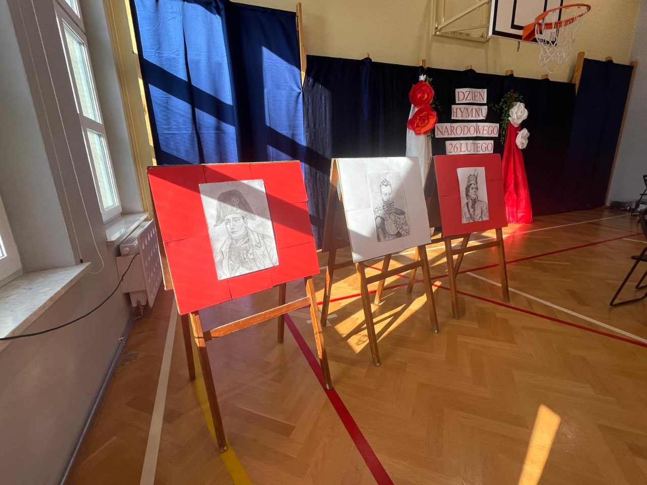 Wyjątkowy charakter wydarzenia podkreślała również starannie przygotowana dekoracja, której autorką była Pani Adriana Zabieglińska. Jednym z dodatkowych elementów scenografii były portrety Stefana Czarnieckiego, Napoleona Bonaparte oraz Tadeusza Kościuszki, namalowane przez Polę Białkowską z klasy 7a.