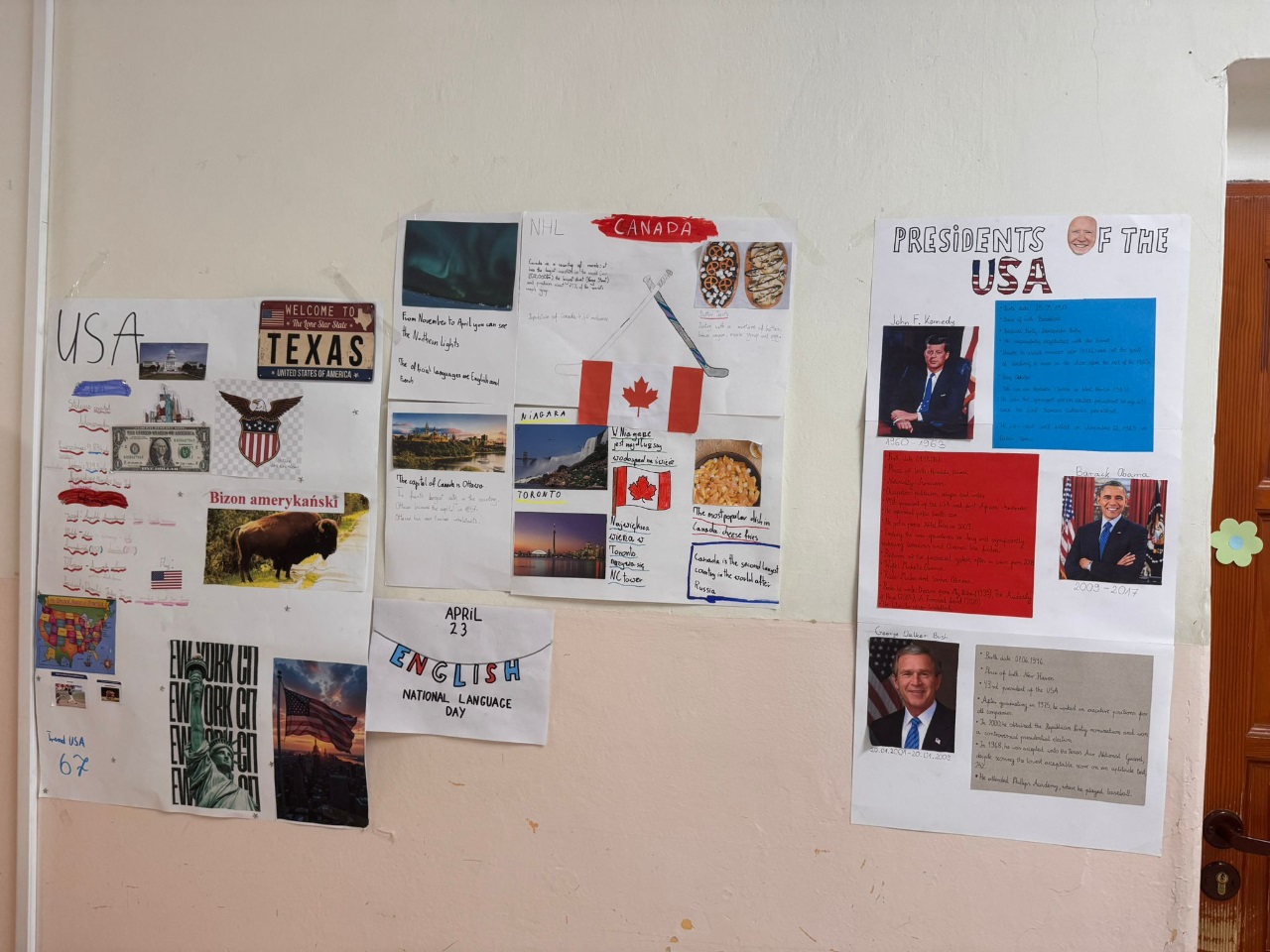 23 kwietnia obchodzony jest Dzień Języka Angielskiego w związku z tym każda klasa przygotowała plakat na temat związany z krajami, w których angielski jest językiem urzędowym. Plakaty można podziwiać na korytarzu na drugim piętrze. Do czego zachęcamy bo już w przyszłym tygodniu odbędzie się konkurs wiedzy o krajach anglojęzycznych.