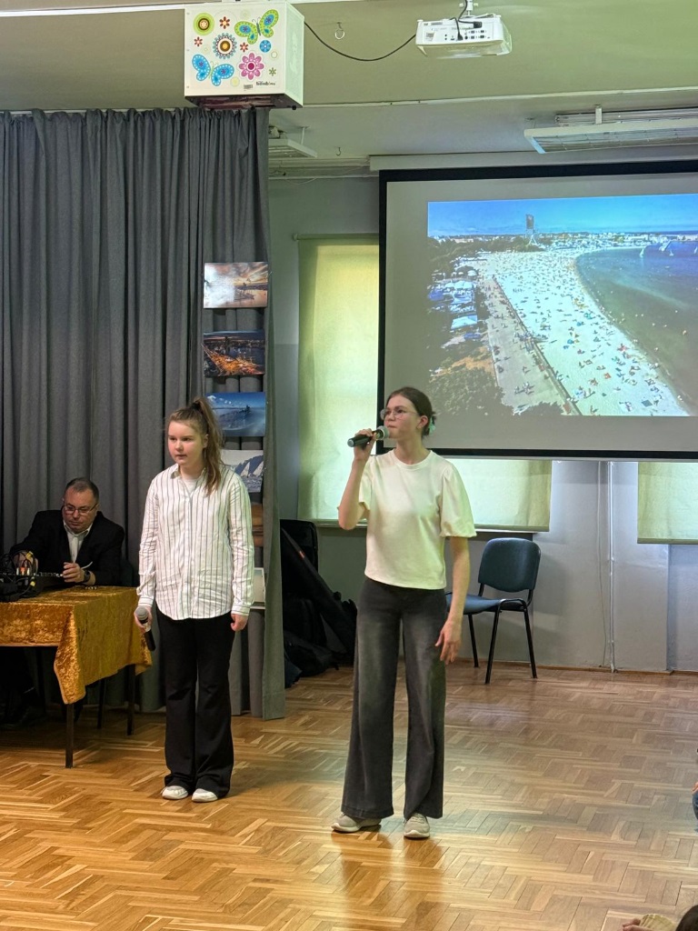 Urodziny Gdyni zakończyły się zaproszeniem na gdyńskie plaże w piosence „Wzywa cię morze” w fantastycznym wykonaniu Przemka (śpiew i gitara) oraz jego koleżanek i kolegów z klasy VI c (p. M. Wideł- Wysockiej).