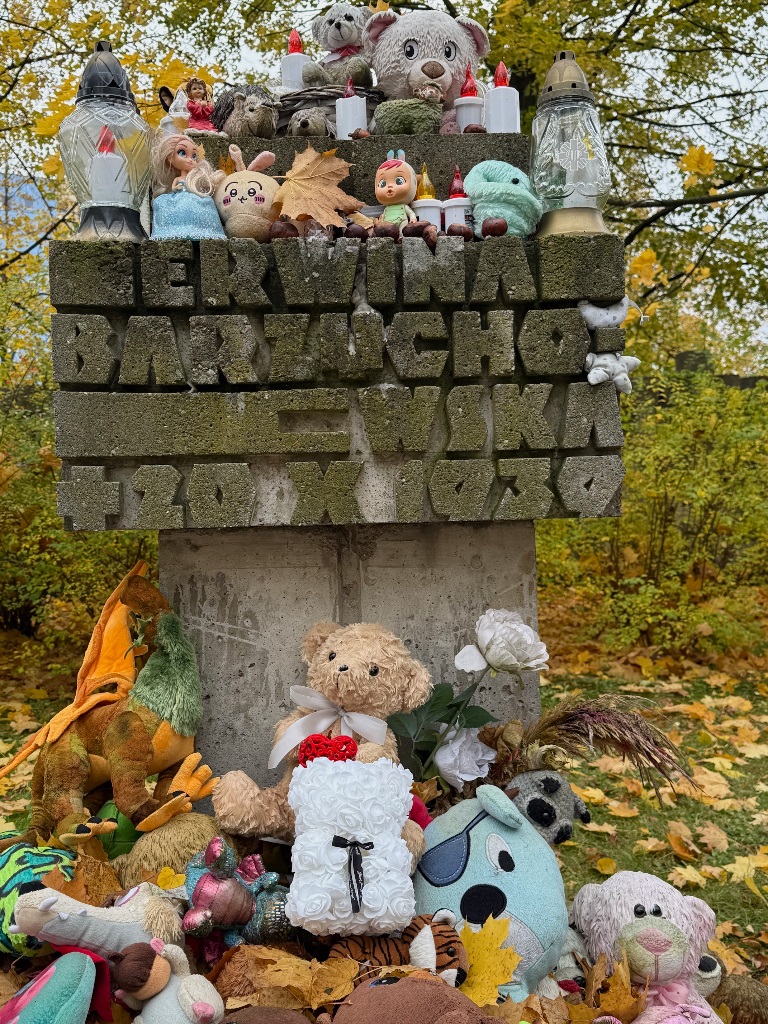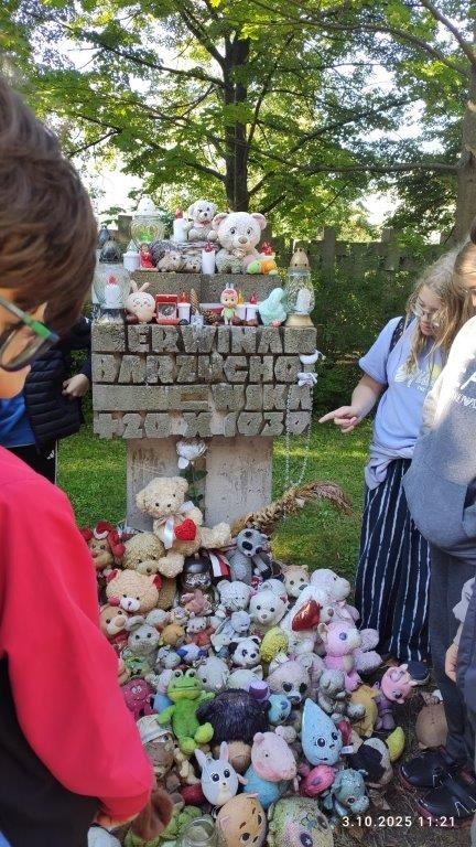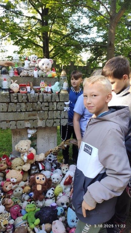 Jak co roku i tej jesieni Uczennice i Uczniowie naszej szkoły wraz z nauczycielami odwiedzili Cmentarz Ofiar Terroru Hitlerowskiego – Pomnik Bohaterów na gdańskiej Zaspie przy ul. Chrobrego, realizując projekt historyczno-obywatelski "SZLAKIEM ERWINKI BARZYCHOWSKIEJ". Historia krótkiego życia i tragicznej śmierci najmłodszej Obrończyni Poczty Polskiej w Gdańsku z 1939 r. jest naszej społeczności szkolnej dobrze znana. Kolejne już klasy grabią liście na cmentarzu, zapalają światełka pamięci na wielu wojennych kwaterach, a na symbolicznym grobie Erwinki - kładą pluszowe zabawki - z pamięcią i dla pamięci...