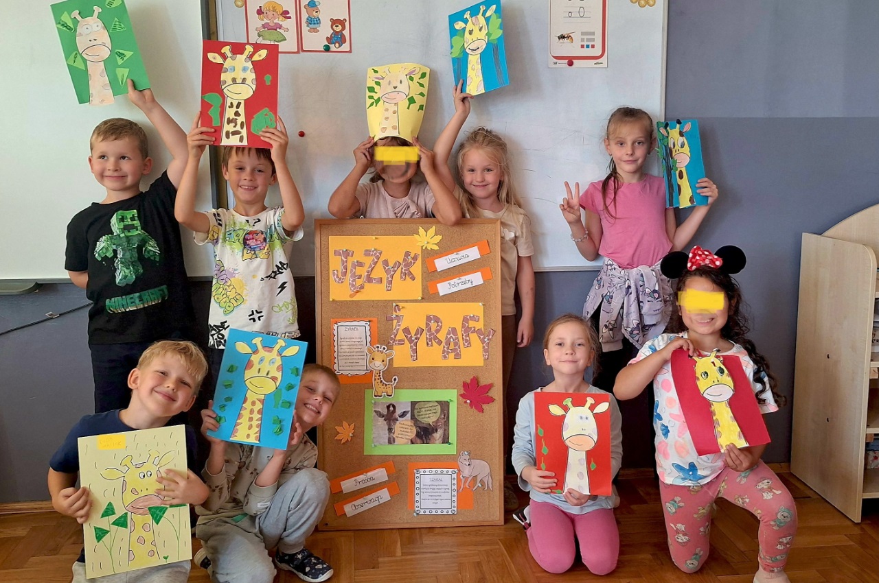 W roku szkolnym 2025/26 klasa 1a bierze udział w ogólnopolskim projekcie edukacyjnym pt. "Moc relacji - siła bez przemocy" - program związany z NVC. Z tej okazji uczniowie poznali głównego bohatera, czyli Żyrafę, która jest symbolem komunikacji empatycznej, opartej na zrozumieniu i porozumieniu. Wspólnie z nauczycielami dzieci stworzyły klasową gazetkę, która będzie przypominać o najważniejszych kwestiach oraz wykonały prace plastyczne - Żyrafy.