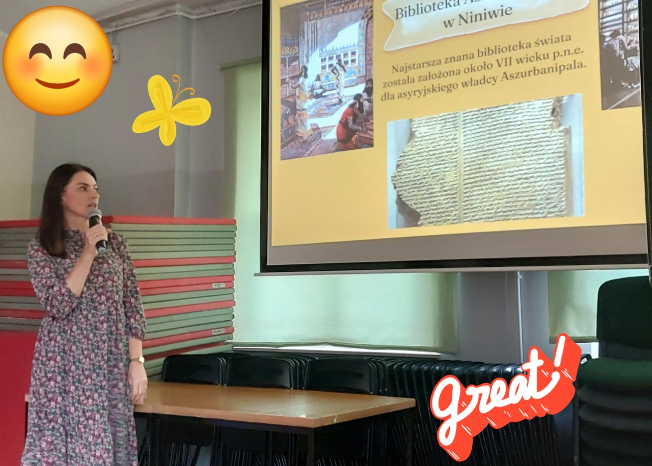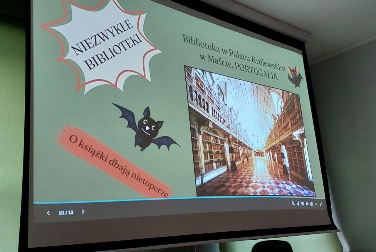 W dniu 8 października uczniowie klas 1-3 uczestniczyły w zajęciach czytelniczo-bibliotecznych. Na początku wolontariuszki i wolontariusze z klasy 8a zaprezentowali czytanie z podziałem na role jednego opowiadania z "Malutkiej czarownicy" Otfierda Preusslera. Interpretacja byla na tyle intrygująca, że po spotkaniu wszystkie egzemplarze tej ksiązki zostały wypożyczone, a nawet pojawiła się kolejka chętnych do zapoznania się z tym utworem! Pani Agnieszka przedstawiła niezwykle interesującycą prezentację mulimedialną "Biblioteki świata". Pojawiły się w niej obrazy bibliotek najstarszych, najbardziej niezwykłych, najnowocześniejszych oraz najciekawszych bibliotek dla dzieci. Po prezentacji ogłoszone zostały: szkolny konkurs plastyczny "Biblioteka moich marzeń" (dla klas 1-3) oraz szkolny maraton czytelniczy "Czytelmaniak SP 24" (dla klas 3). Na zakończenie uczniom, którzy podjęli "wakacyjne wyzwanie z biblioteką" wręczono dyplomy i drobne upominki.