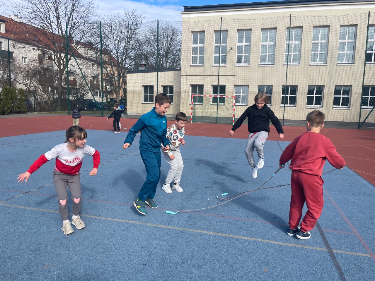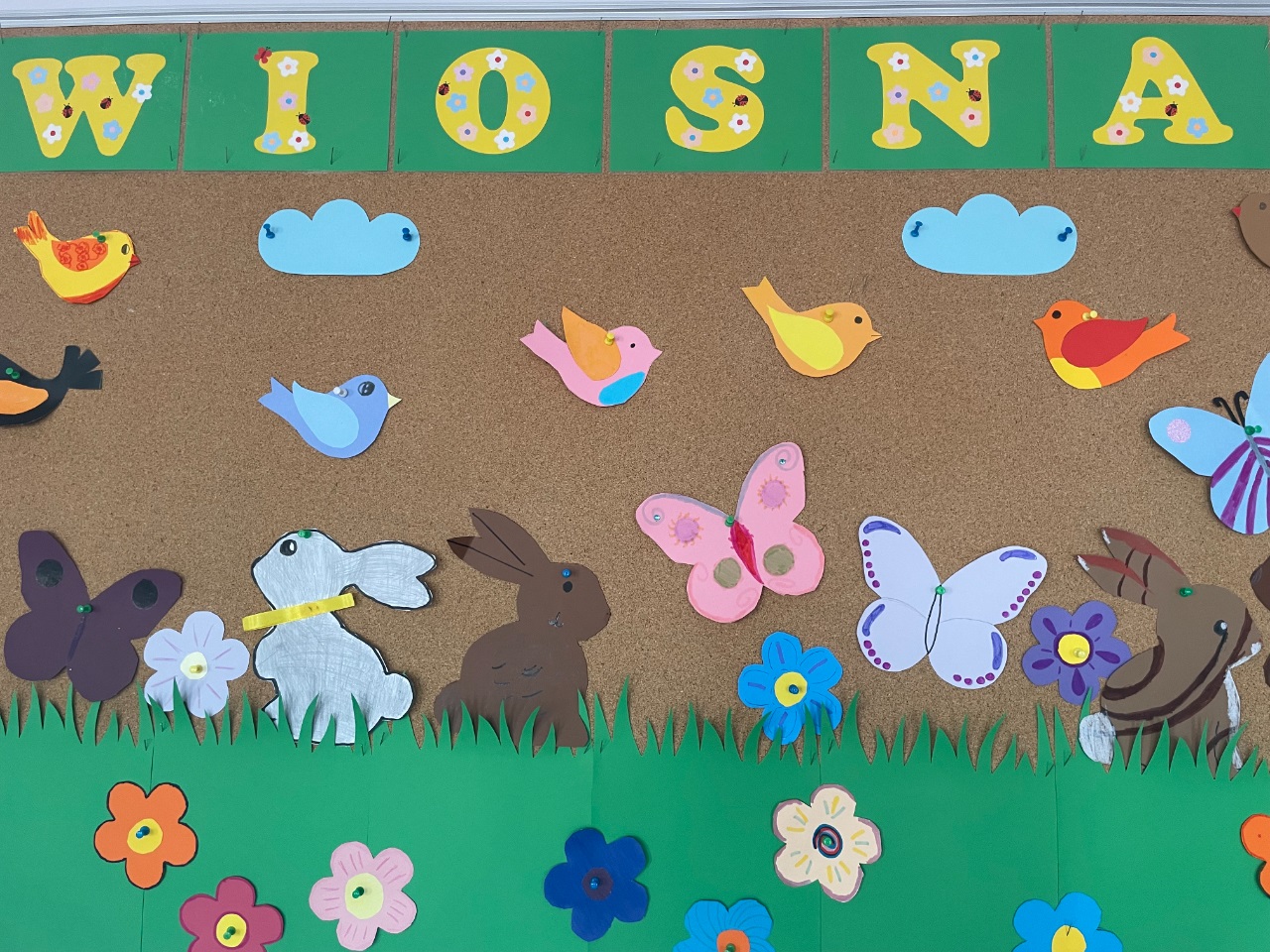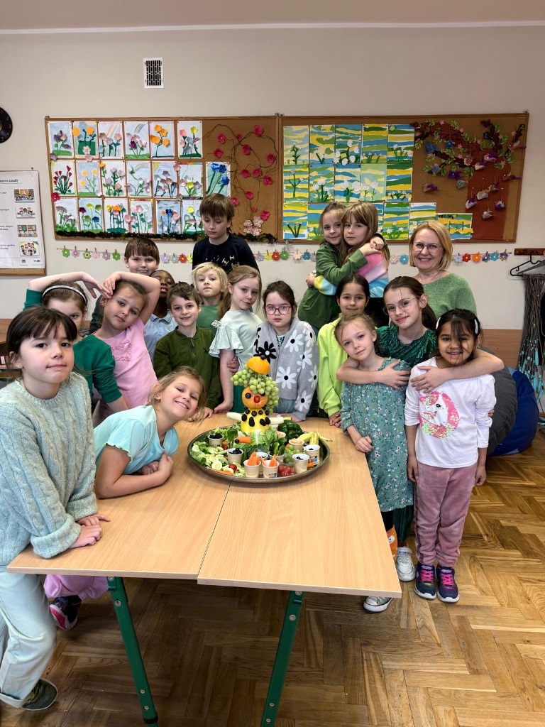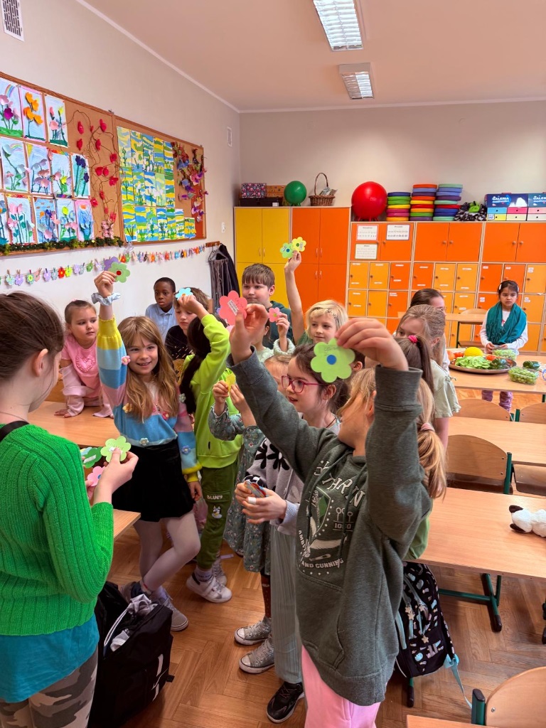 Piękne wiosenne dekoracje, radosna atmosfera, aforyzmy o tematyce wiosennej, aktywne przerwy na boisku szkolnym. Szczęście w szkole i Dzień Wiosny. Uczniowie wzięli udział w konkursie i współpracując ze sobą stworzyli „Zdrową Panią Wiosnę”, zaangażowali się w zabawy wiosenne „Szczęśliwy numerek” - wylosowany numer z dziennika miał wybrane przywileje. Wzięli udział w zabawie „Walizka Szczęściarza”, gdzie losowali nagrody oraz aktywnie uczestniczyli w wiosennej poczcie „Miłe słowa”. Podczas przerw tworzyli obraz z odrysowanych dłoni – „My w szczęśliwej szkole”. Uczestnicy i Rodzice mieli też możliwość obejrzeć krótki występ klasy 2b o tematyce zdrowotnej. Ten tydzień zdecydowanie utkwił w naszej pamięci i wreszcie poczuliśmy wiosnę w pełni.