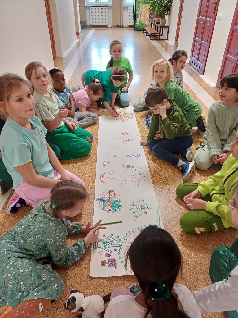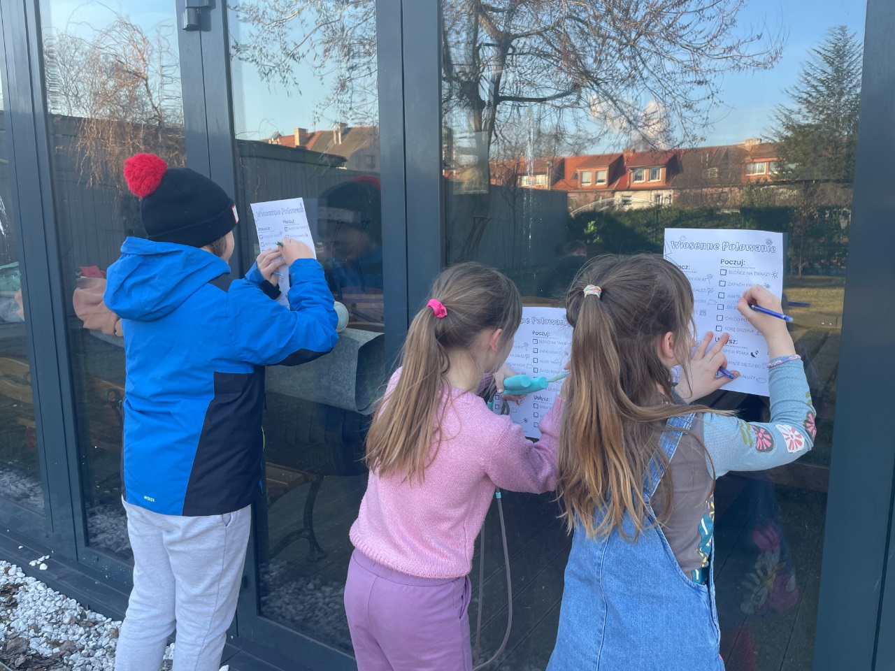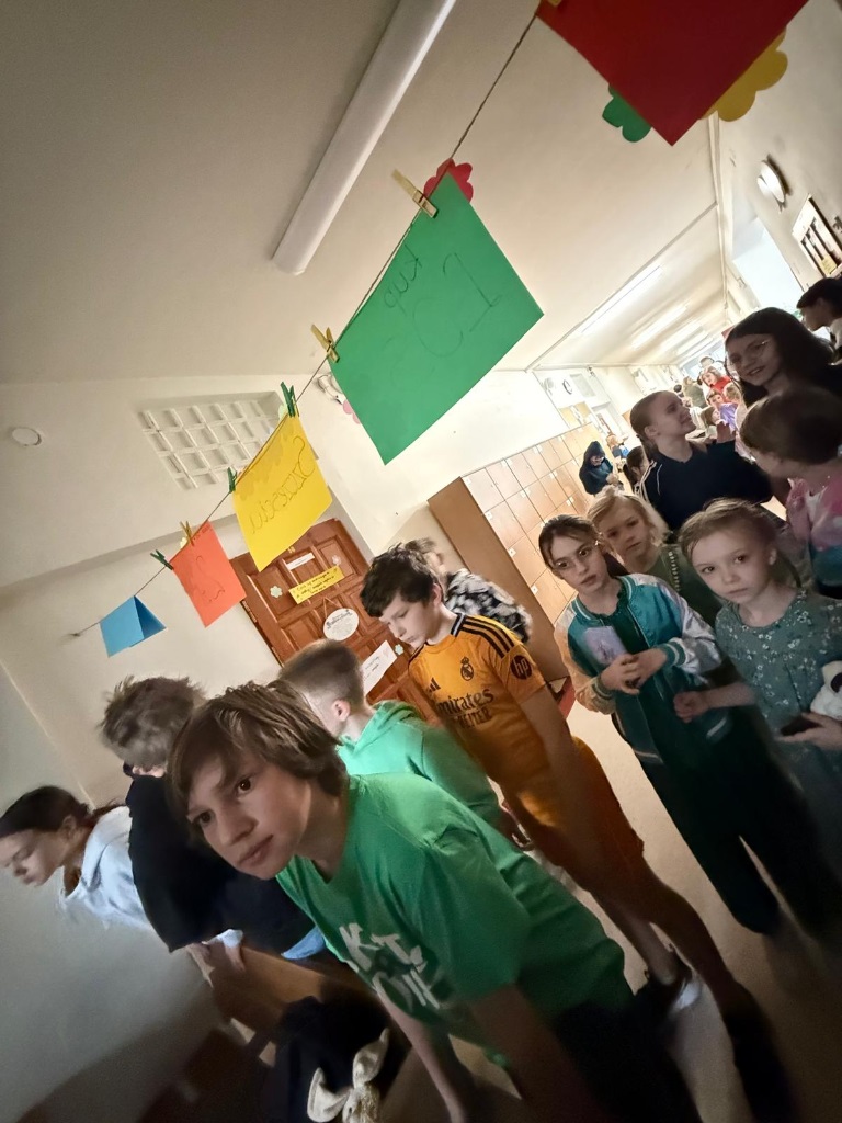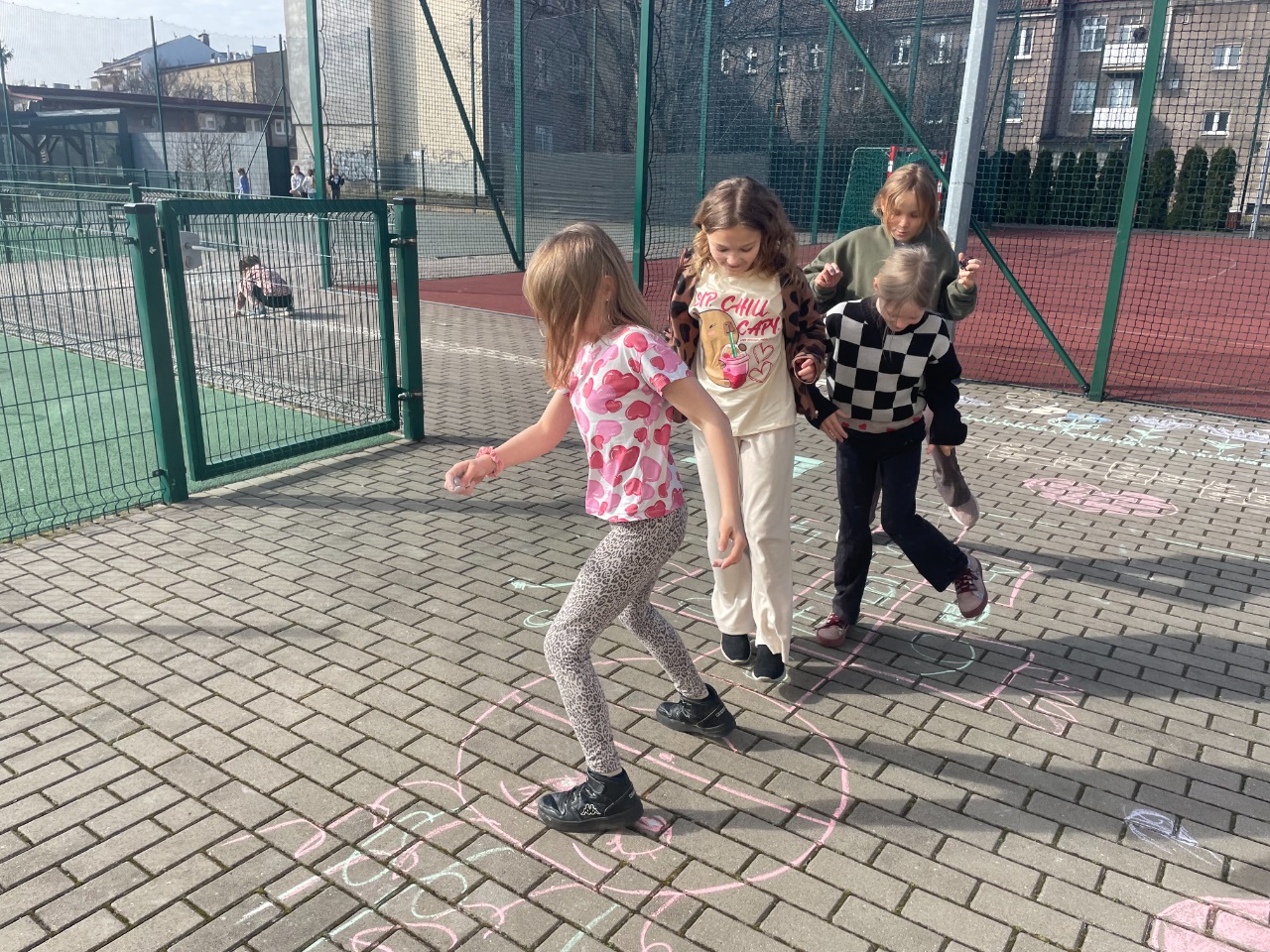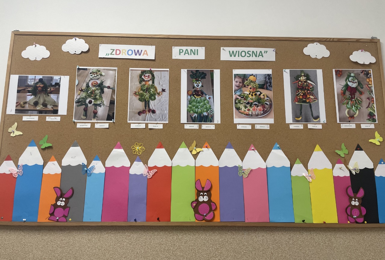 Piękne wiosenne dekoracje, radosna atmosfera, aforyzmy o tematyce wiosennej, aktywne przerwy na boisku szkolnym. Szczęście w szkole i Dzień Wiosny. Uczniowie wzięli udział w konkursie i współpracując ze sobą stworzyli „Zdrową Panią Wiosnę”, zaangażowali się w zabawy wiosenne „Szczęśliwy numerek” - wylosowany numer z dziennika miał wybrane przywileje. Wzięli udział w zabawie „Walizka Szczęściarza”, gdzie losowali nagrody oraz aktywnie uczestniczyli w wiosennej poczcie „Miłe słowa”. Podczas przerw tworzyli obraz z odrysowanych dłoni – „My w szczęśliwej szkole”. Uczestnicy i Rodzice mieli też możliwość obejrzeć krótki występ klasy 2b o tematyce zdrowotnej. Ten tydzień zdecydowanie utkwił w naszej pamięci i wreszcie poczuliśmy wiosnę w pełni.