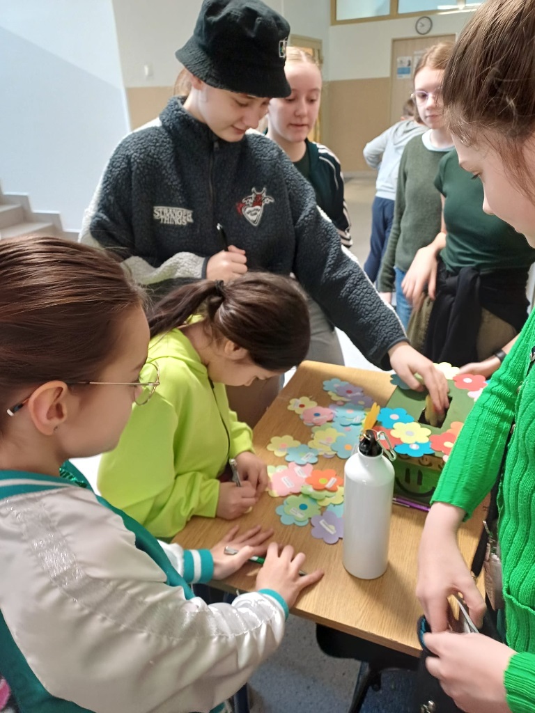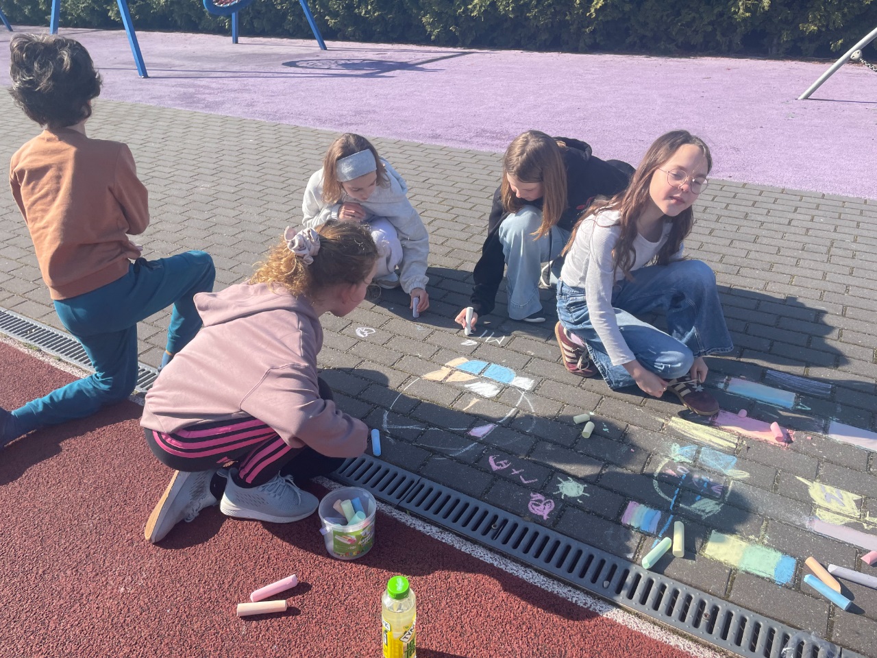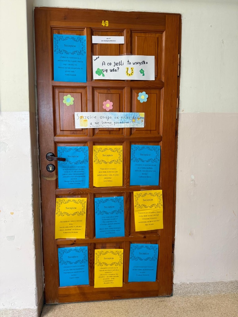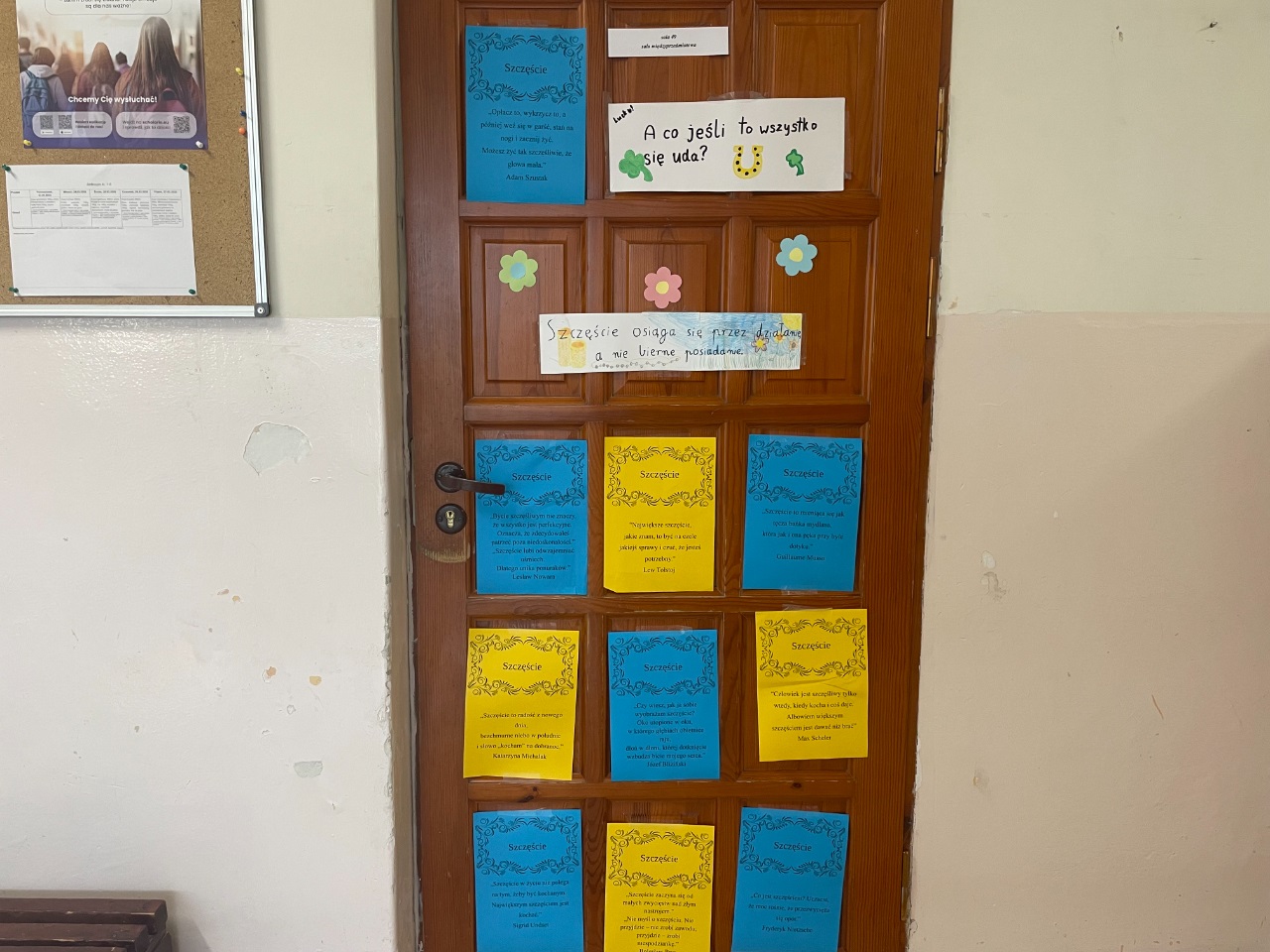 Piękne wiosenne dekoracje, radosna atmosfera, aforyzmy o tematyce wiosennej, aktywne przerwy na boisku szkolnym. Szczęście w szkole i Dzień Wiosny. Uczniowie wzięli udział w konkursie i współpracując ze sobą stworzyli „Zdrową Panią Wiosnę”, zaangażowali się w zabawy wiosenne „Szczęśliwy numerek” - wylosowany numer z dziennika miał wybrane przywileje. Wzięli udział w zabawie „Walizka Szczęściarza”, gdzie losowali nagrody oraz aktywnie uczestniczyli w wiosennej poczcie „Miłe słowa”. Podczas przerw tworzyli obraz z odrysowanych dłoni – „My w szczęśliwej szkole”. Uczestnicy i Rodzice mieli też możliwość obejrzeć krótki występ klasy 2b o tematyce zdrowotnej. Ten tydzień zdecydowanie utkwił w naszej pamięci i wreszcie poczuliśmy wiosnę w pełni.