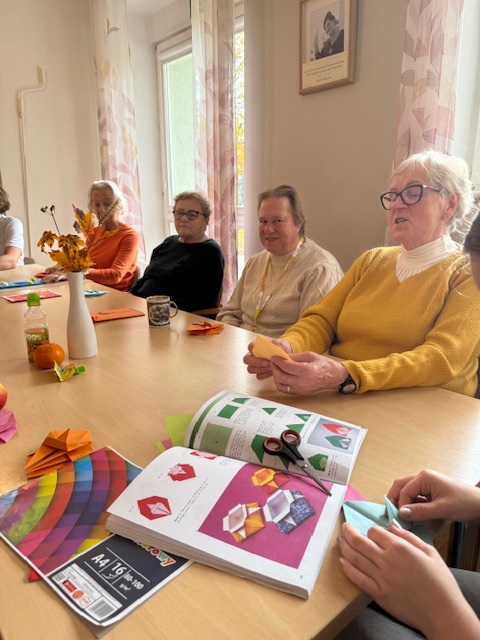 W listopadzie, w ramach zajęć z edukacji zdrowotnej, rozpoczęliśmy współpracę z Klubem Seniora z ul Waryńskiego 22 we Wrzeszczu. Jest to dzienny dom organizujący spotkania, warsztaty, koncerty i zajęcia dla samotnych seniorów. W pierwszym spotkaniu międzypokoleniowym udział wzięli uczniowie i uczennice z klas 8a i 8b. Przygotowaliśmy „jesienne warsztaty plastyczne”. Podczas miłych rozmów tworzyliśmy wspólnie origami oraz stroiki, świeczniki, girlandy, obrazy z liści i innych darów Jesieni. To był cudownie spędzony czas . Dziękujemy za miłe przyjęcie i słodki poczęstunek.